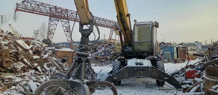 Узкоспециализированная спецтехника, которая представляет собой экскаватор на гусеничном или колесном ходу с длинной стрелой, грейферным захватом и особой кабиной. Длинная стрела позволяет работать на большом радиусе вокруг себя, складывая в кучи лом, металл.